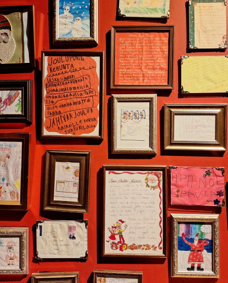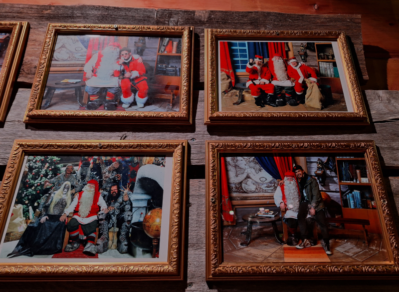 Vratili smo se na vreme u Deda Mrazovu kancelariju. Tu su bili i svi ostali koji su dobili taj isti termin. Krenuli smo kroz mračne hodnike, pune zapakovanih poklona. Videli smo na zidu fotografije čuvenih posetilaca.